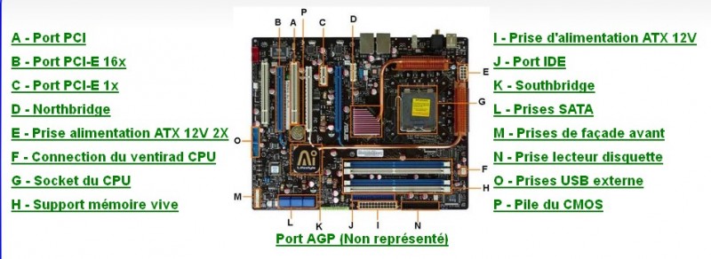 La carte mère est un grand circuit imprimé qui permet la connexion de l'ensemble des éléments essentiels de l'ordinateur (connecteurs pour les cartes d'extension, les barrettes de mémoires, le processeur, etc. ).